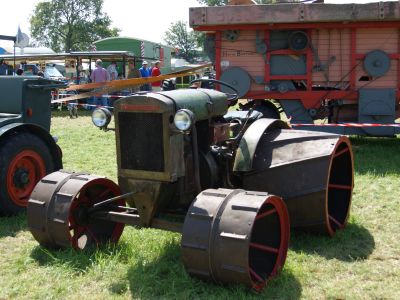 Groß und blaugrün Dieser schön restaurierte Hanomag trieb eine große Dreschmaschine an, sehr passend und eindrucksvoll.